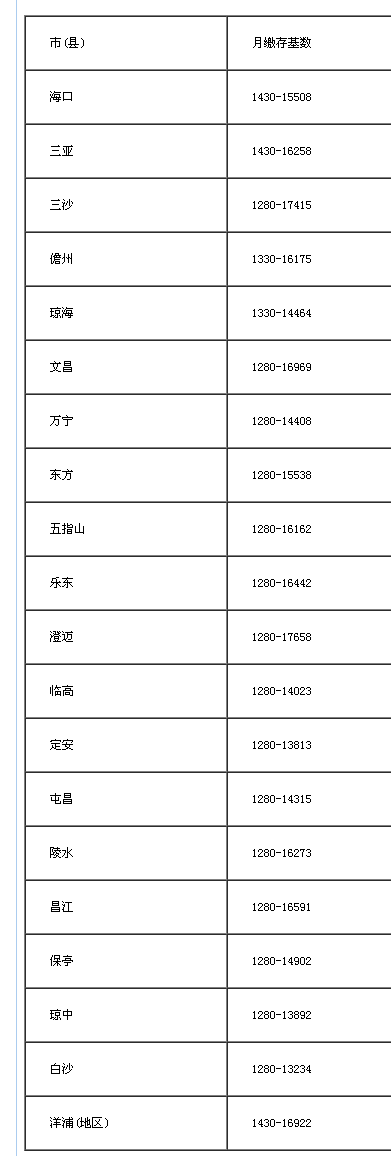 2017年度住房公积金缴存基数范畴如下: